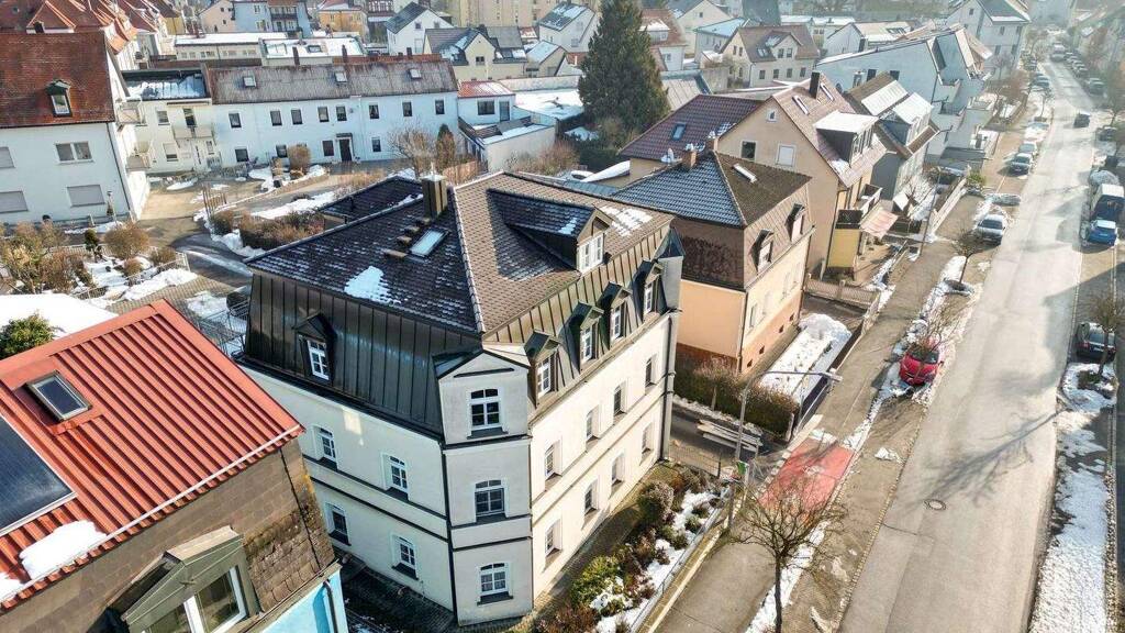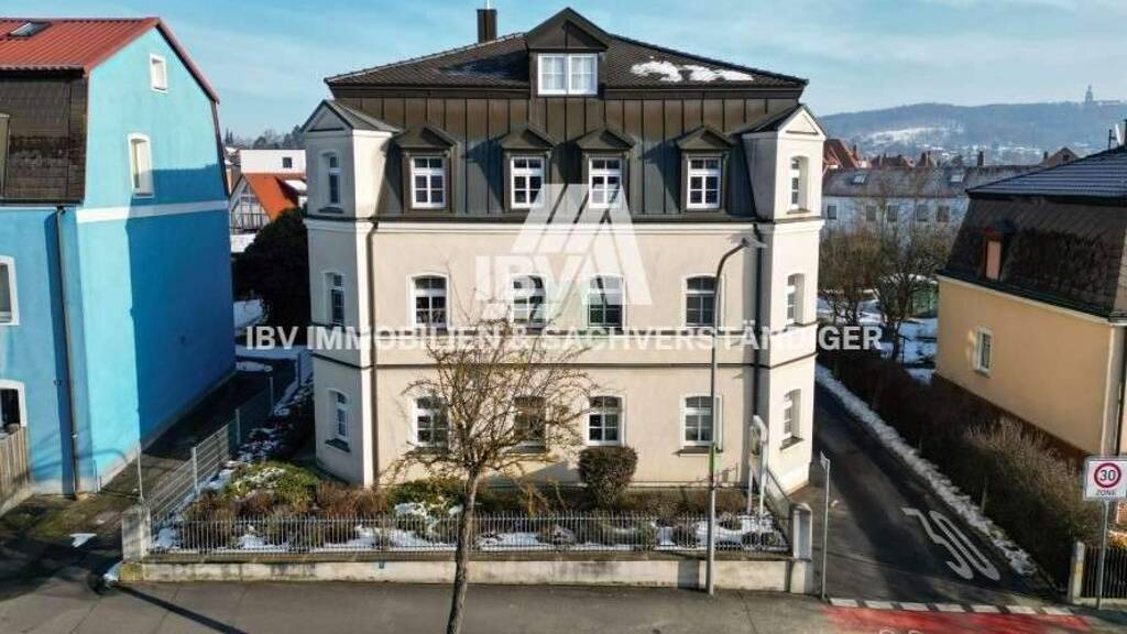 Besondere Highlights sind die an den Jugendstil erinnernde Fassade mit optischen Gliederungen, hochwertige segmentbogenförmige Fenstern und dem auffälligem Mansarddach. Besonders "wertvoll" in dieser Stadt-Lage ist der große Hof mit seinen 5 Einzelgaragen und 3 Aussenstellplätzen.