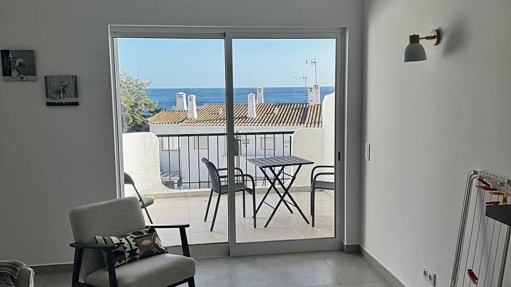 Die Property befindet sich derzeit in einer hochwertigen Komplettsanierung, bei der jedes Detail darauf ausgerichtet ist, einen hellen und zeitgemäßen Wohnraum zu schaffen. Im oberen Stockwerk führt der Eingang zu einem eindrucksvollen offenen Wohnbereich. Eine moderne Küche mit centraler Insel fügt sich harmonisch in das Wohnzimmer ein, das direkt auf einen privaten Balkon hinausführt. Dieser Außenbereich ist der ideale Ort, um den atemberaubenden Blick auf den Atlantischen Ozean und die ikonische Rocha Negra-Felswand zu genießen.