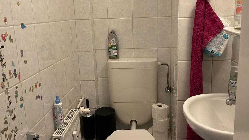 Das Tageslichtbad verfügt über eine Badewanne, ein WC, ein Waschbecken sowie einen Waschmaschinenanschluss und ist mit zeitlosen Wand-/Bodenfliesen ausgestattet.
