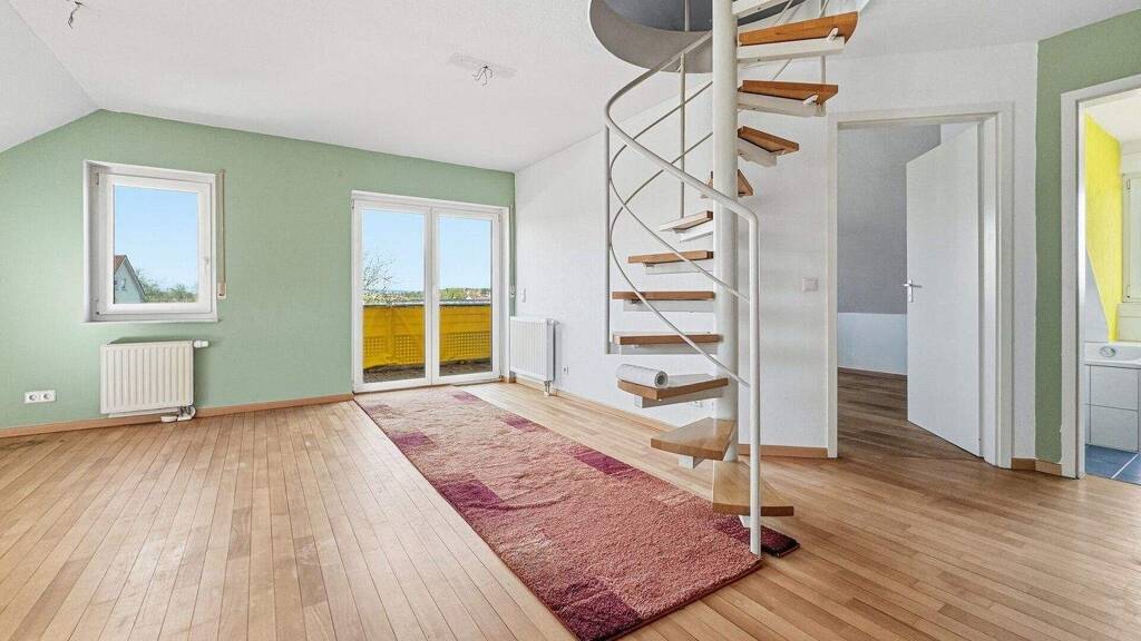 Ein besonderes Highlight ist der ausgebaute Dachboden (Keine Wohnfläche). Zwar ist die Stehhöhe begrenzt, jedoch bietet der Raum in sitzender Position viele Nutzungsmöglichkeiten - ideal z.?B. als ruhiger Rückzugsort für Homeoffice.
