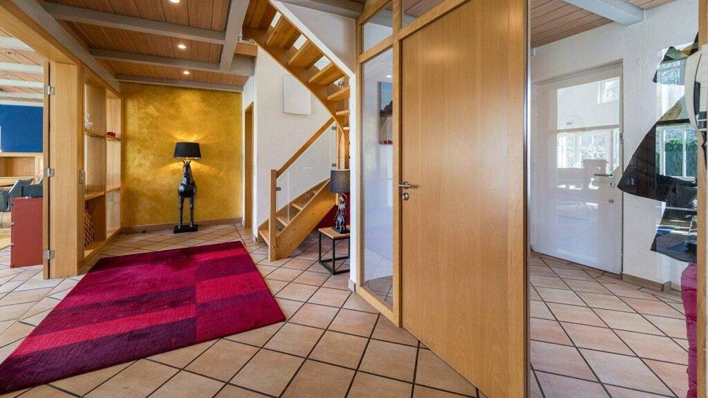 Das Hauptgebäude bietet Ihnen ca. 246 m² stilvoll gestalteten Wohnraum mit insgesamt vier Zimmern, die höchsten Ansprüchen gerecht werden. Highlight ist der offene Wohn- und Essbereich mit Galerie und wundervollem Blick in den Garten und die angrenzenden unverbaubaren Grünflächen. Der Wohnbereich ist mit einem Kamin ausgestattet, der im Jahr 2022 erneuert wurde und für wohlige Atmosphäre sorgt. Für den Gourmet unter Ihnen: Die Nolte Küche aus dem Jahr 2023 lässt keine Wünsche offen.