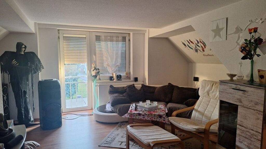 Das Obergeschoss hat eine sehr offene Grundrissgestaltung. Von der Treppe aus erreichen Sie ein sehr großzügig geschnittenes Wohnzimmer mit einem Ausgang auf den Balkon. Neben einer kleinen Kammer steht Ihnen hier noch ein weiteres Schlafzimmer zur Verfügung.