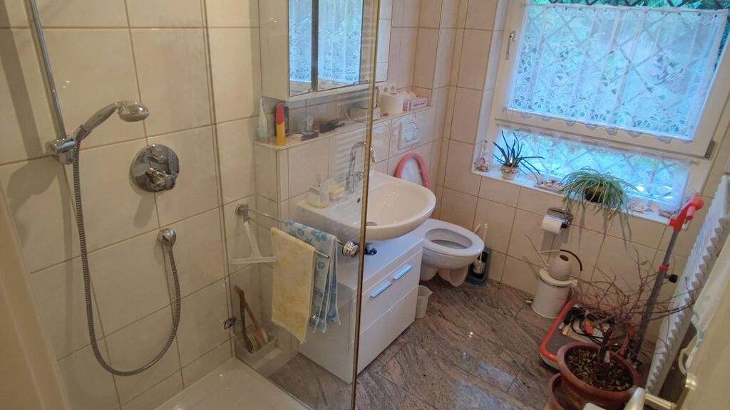 Im Untergeschoss befindet sich ein weiteres Badezimmer mit Dusche und WC, der Schlafraum, ein großer Einbauschrank sowie ein weiteres Zimmer und der Hausanschlussraum mit Übergabestation der Fernwärmeversorgung.