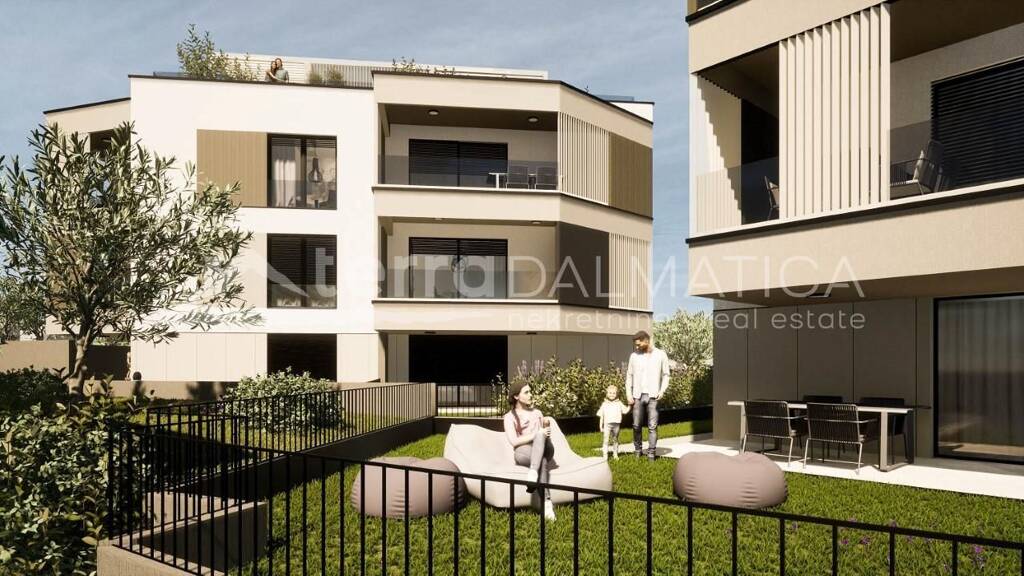 In Zadar, Gegend Diklo, steht eine Luxuswohnung in einem neuen Gebäude, 200 m vom Meer entfernt, zum Verkauf. Sie befindet sich im Erdgeschoss des Anwesens, das Teil einer Wohnanlage aus zwei Gebäuden mit insgesamt zwölf Wohnungen zu je sechs ist. Es ist nur zweihundert Meter von einem ruhigen Strand und einer Promenade mit Gastronomieeinrichtungen, einem Spielplatz, einer Bushaltestelle und anderen Annehmlichkeiten entfernt. Die Wohnung A1 im Gebäude A besteht aus einem offenen Wohnbereich mit Küche, Esszimmer und Wohnzimmer mit einer Fläche von 25,44 m2, zwei Schlafzimmern, zwei Badezimmern, einem Abstellraum und einem Hauswirtschaftsraum. Vom Wohnzimmer aus hat man Zugang zur Terrasse von 17,9 m2 und zum Garten von 46,95 m2. Alle Wohnungen sind mit einbruchsicheren und schalldichten Eingangstüren, Video-Gegensprechanlage, TV-Anschlüssen ausgestattet alle Räume auf zwei Höhen (Antennen, Internet), Fußbodenheizung und -kühlung über Wand-Gebläsekonvektoren in allen Räumen (Wärmepumpe), feste Jalousien und Rollos zum Schutz vor der Sonne und der Aussicht auf die Terrassen. Die Wohnungen verfügen außerdem über einen Abstellraum in der Tiefgarage und zwei Parkplätze, einer davon in der Garage (mit angeschlossener Stromversorgung für intelligente Ladegeräte für Elektrofahrzeuge) und ein Außenparkplatz. Die Gartenterrassen der Wohnungen im Erdgeschoss sind mit einer Tropfbewässerungsanlage ausgestattet Dachterrassen verfügen über Wasser-, Abwasser- und Stromanschlüsse, Energie für Außenküchen, Duschen und/oder Whirlpools. All dies macht es zu einer attraktiven Immobilie sowohl für das ganze Jahr über als auch für den Tourismus. Der charmante, ruhige Stadtteil Diklo liegt an der Adriaküste und bietet zahlreiche Ferienunterkünfte. Es liegt weniger als 5 km von Zadar entfernt. Kontaktieren Sie unseren Agenten und planen Sie Ihre Tour. Hinweis: In der Anzeige werden Renderings verwendet.