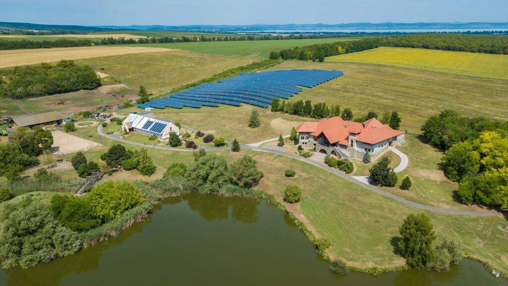 Diese außergewöhnliche und einzigartige Liegenschaft mit einer Gesamtfläche von insgesamt 7,7 Hektar liegt in Siófok-Töreki, ca. 5 km vom Plattensee entfernt. Das Grundstück besticht durch seine Alleinlage inmitten der Natur. Das schlossähnliche, nur zu ca. 30 % ausgebaute Wohngebäude aus dem Jahr 2010, verfügt über eine Gesamtfläche von 2.200 m² und lässt nach eigener Fertigstellung keine Wünsche offen. In der Wohnanlage befinden sich außerdem ein nahezu fertiggestellter Swimmingpool mit einer Größe von 10 m x 3,5 m sowie ein eigener Jacuzzi. Das Wohnanwesen kann nach Rücksprache mit den zuständigen Baubehörden auch umgenutzt werdenm dies gilt auch für Teilflächen. Die Beheizung erfolgt über in den Bereichen vorhandenen Kachelöfen - angeschlossen an die Zentralheizung, die entweder über Holz betrieben oder - gekoppelt an die 12,5 KW starke Solarpanelanlage - über die Solaranlage auf dem Wirtschaftsgebäude. Von den Wohnflächen oder der großzügigen Terrasse aus überblickt man nahezu das gesamte Grundstück. Von Hügeln und Bäumen umgeben, beherbergt das parkähnliche Grundstück einen aktiven Fischteich, eine Reitbahn, mehrere voneinander getrennte und eingezäunte Pferdekoppeln sowie mehrere Einstellboxen für Pferde. Daneben befinden sich Wirtschaftsgebäude, das separate Futterlager sowie zwei Apartments für Mitarbeiter. Überdachte Flächen für ggf. notwendige Maschinen und sonstiges Material sind ebenso vorhanden. Ein wesentliches Alleinstellungsmerkmal dieser Liegenschaft liegt in der vollständigen Eigenständigkeit in Bezug Energie- und Wasserversorgung. Ein auf dem Grundstück befindlicher Transformator sichert Energie und ein eigener auf dem Anwesen liegender Brunnen versorgt die Bewohner mit frischem Trinkwasser. Zusätzlich steht eine Wasseraufbereitungs- sowie eine eigene Kläranlage zur Verfügung. Angrenzend befindet sich eine vom Verkäufer erstellte und betriebene Solaranlage die derzeit auch Teile des Grundstücks versorgt. Die dort produzierte Energie wird an die Stadt Siófok verkauft. Ein Ankauf dieses Grundstücks sowie der erbauten Solaranlage sowie ggf. weiterer angrenzenden Nutzflächen kann separat verhandelt werden. Nehmen Sie Kontakt mit uns auf. Wir freuen uns, Ihnen dieses außergewöhnliche Anwesen persönlich vorstellen zu können.
