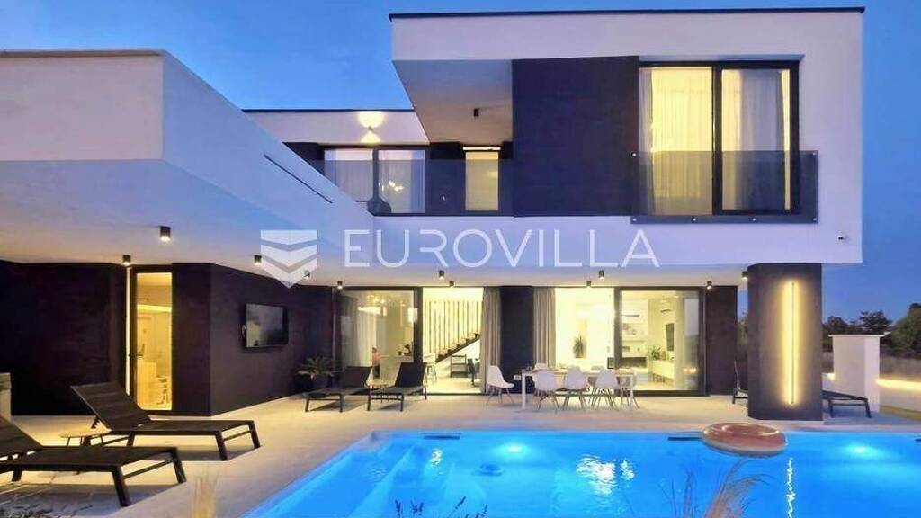 Zadar, Kozino, prekrasna vila s bazenom nalazi se na zemljistu povrsine 563 m2, koja je vrhunski i kvalitetno opremljena.Prizemlje vile sastoji se od ulaznog prostora, otvorenog koncepta kuhinje, blagovaonice i dnevnog boravka, gostinjskog wc-a, prostora za saunu te natkrivene terase ( prizemlje ukupno 135,64 m2).Na drugoj etazi nalaze se tri spavace sobe s pripadajucim kupaonicama, a master spavaca soba ima i walk in garderobu te terasa ( ukupno 135,64 m2).U prekrasno uedenom dvoristu nalazi se i bazen povrsine 31 m2 te suncaliste.Dizajnerski namjestaj dodatno postize estetski dojam i cini ovu vilu atraktivnom i privlacnom te nudi potpuni uzitak stanovanja i boravka u prostoru.... Vise na eurovilla.hr, ID: 969614