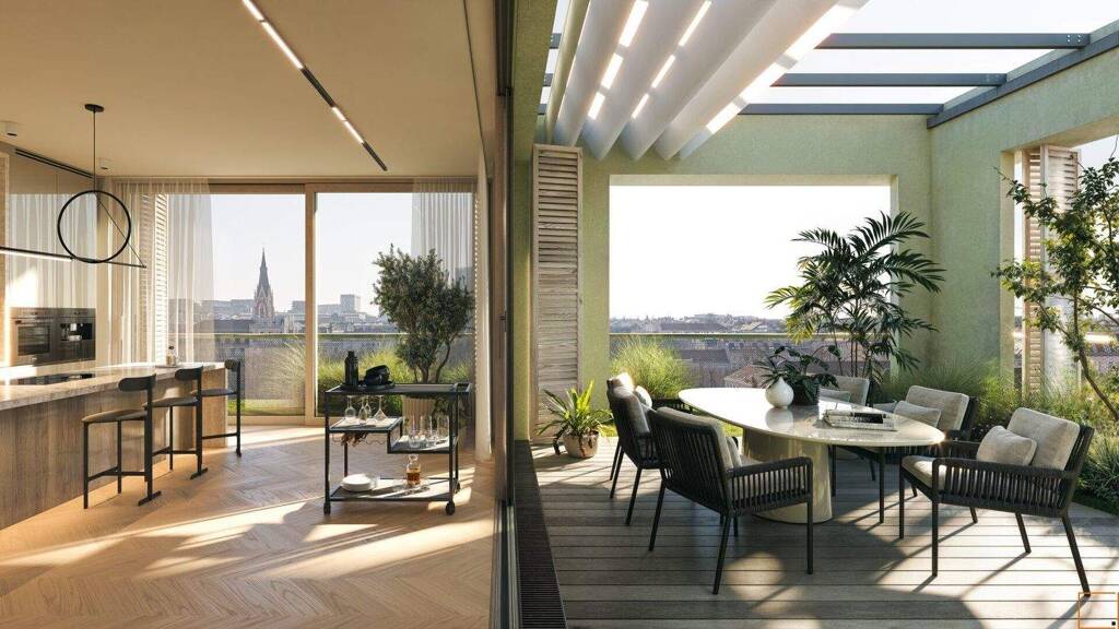 Die top26 liegt im 4.Obergeschoß und verfügt über zwei süd-west-seitige Terrassen mit Blick auf den Theresianumpark.