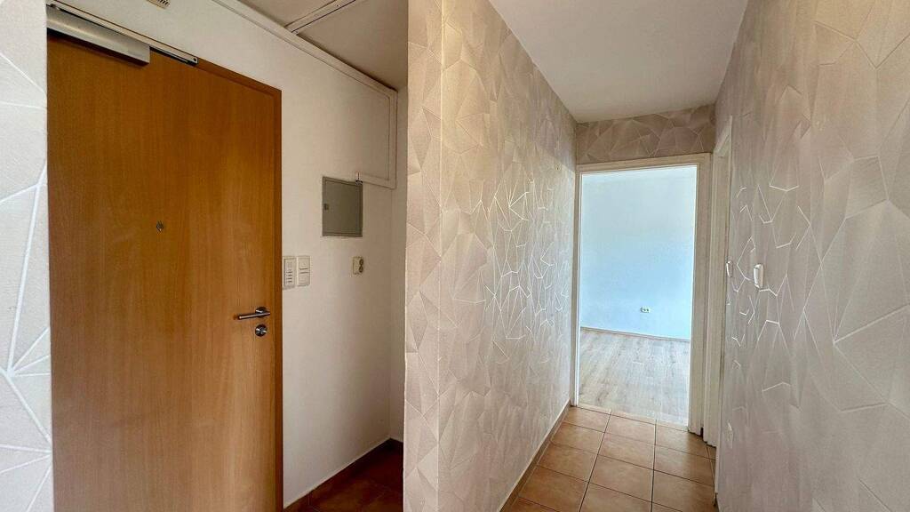 Beim Betreten der Wohnung gelangen Sie in einen funktionalen Flur, der mit zwei praktischen Abstellnischen zusätzlichen Stauraum bietet. Von hier aus sind alle Räume der Wohnung direkt zugänglich, was eine funktionale Wohnstruktur schafft.