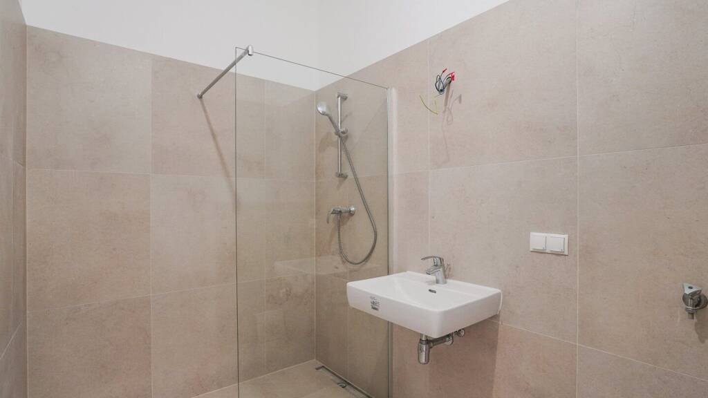 Das Badezimmer ist mit schönen zeitlosen Fliesen und einer modernen begehbaren Dusche ausgestattet. Zudem gibt es ein separates WC. Der Fischgrätparkett verleihen den Räumen eine elegante Note, und ist dank angenehmer Fußbodenheizung zu jeder Jahreszeit angenehm temporierbar.