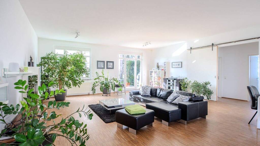 Die Highlights der Raumaufteilung: Schon beim Betreten der Wohnung wird der großzügige Charakter deutlich. . Der Empfang: Ein heller Eingangsbereich mit separatem Gäste-WC bietet einen repräsentativen Empfang für Bewohner und Gäste. . Das Herzstück: Der beeindruckende, ca. 90 m² große Wohn- und Essbereich bildet das Zentrum des Lofts. Die offene Gestaltung lässt viel Raum für kulinarische Abende und geselliges Beisammensein. Eine praktische Speisekammer vervollständigt die Küche perfekt und sorgt für unsichtbaren Stauraum direkt an der Wirkungsstätte. . Design-Element: Eine markante Glasschiebetür im Industrial-Look trennt den Wohnbereich stilsicher vom privaten Trakt ab. . Privater Trakt: Hier befinden sich zwei ruhig gelegene Schlafzimmer sowie ein grosszügiges Tageslicht- Badezimmer mit Dusche und Badewanne. Diese räumliche Trennung garantiert maximale Privatsphäre. . Outdoor-Living: Die sonnige Südterrasse lädt dazu ein, den Feierabend im Freien zu genießen - ein privates Refugium mitten im Wiley.