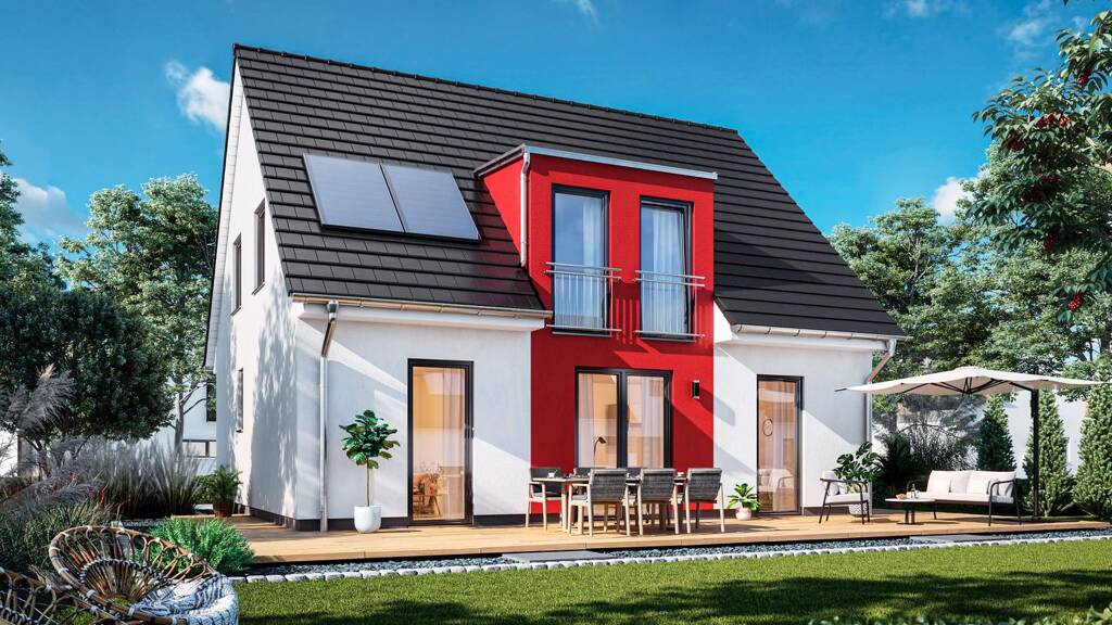 Hier im Preis enthalten ist das Haus mit Vollausstattung, ohne Sonderausstattung, ohne Tapeten und Bodenbeläge. Dazu kommen die Kosten für das Grundstück und die Kauf- und Baunebenkosten. Bitte beachten Sie, dass Bilder Zusatzausstattung enthalten können.