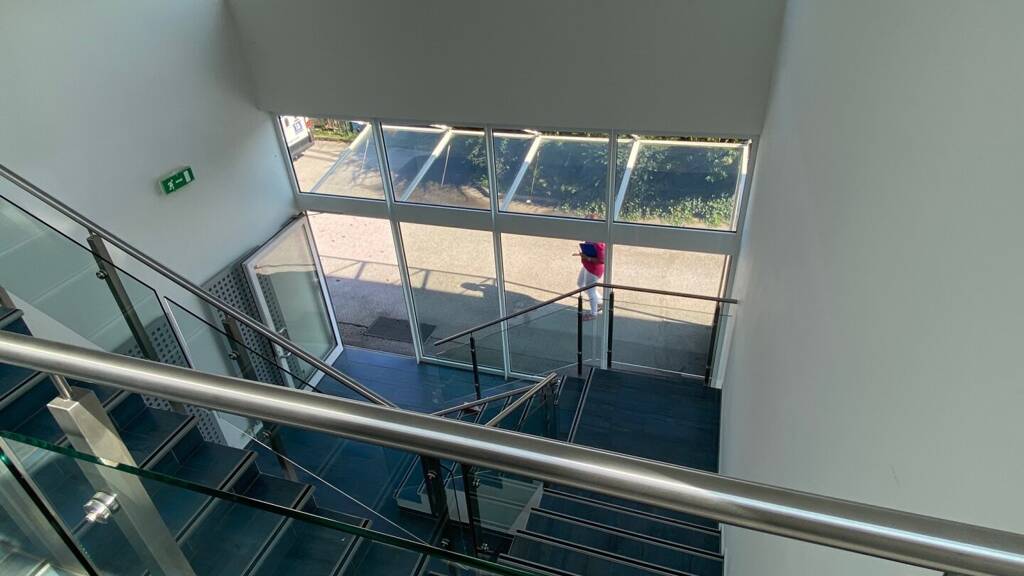 Im Erdgeschoss befinden sich der Eingangsbereich und der Stiegenaufgang zu den Büros. Das Lager im EG hat inkl. Nebenräume eine Gesamtfläche von 198,90m². Im Obergeschoß befinden sich der Empfang/Sekretariat, 5 Büros, 1 Großraumbüro, Besprechungsraum sowie Nasszellen und die Teeküche (Gesamtfläche 301,40m²).