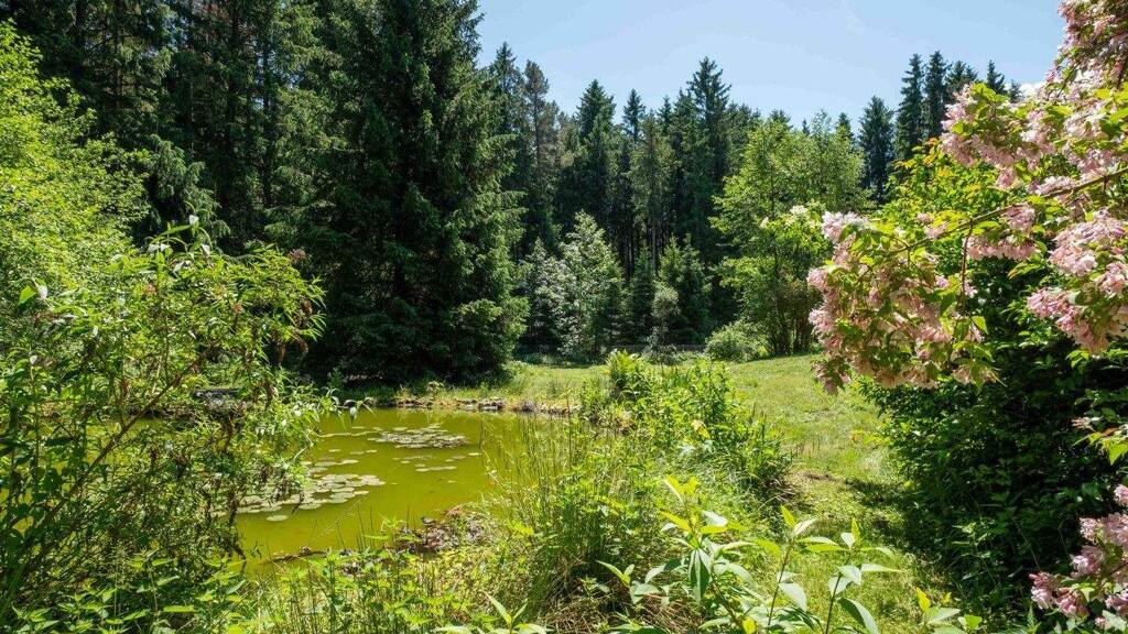 Die Außenanlage - einzigartig: - Knapp 7000?m² Grundstücksfläche in Alleinlage - rund zur Hälfte bewaldet - Außenpool - perfekt für Sommertage in absoluter Privatsphäre - Naturteich auf dem Grundstück - stimmungsvoll und ökologisch wertvoll - Uneinsehbar - keine Nachbarn, kein Straßenverkehr