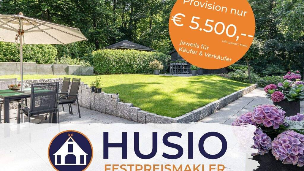 Unsere Festpreisprovision beträgt unabhängig des Kaufpreises jeweils € 5.500,-- inkl. MwSt., verdient und fällig mit Beurkundung des notariellen Kaufvertrages. Der Immobilienmakler hat einen provisionspflichtigen Maklervertrag mit dem Verkäufer in gleicher Höhe abgeschlossen. Sie möchten Ihre Immobilie verkaufen und auch von unserem Festpreiskonzept profitieren? Weitere Informationen erhalten Sie auf unserer Homepage unter www.husio.de.
