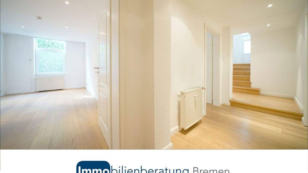 Diese exklusive 3-Zimmerwohnung befindet sich im Erdgeschoss und Souterrain eines gepflegten Altbremer Hauses im beliebten Weidedammviertel in Bremen-Findorff. Mit einer Wohnfläche von ca. 110 m² bietet sie großzügigen Raum für stilvolles und komfortables Wohnen. Bereits bei Betreten der Wohnung empfängt Sie der offene Wohn- und Essbereich im Erdgeschoss, der mit seinen hohen Decken und einer großen Fensterfront ein beeindruckendes Raumgefühl vermittelt. Von hier aus gelangt man direkt auf die sonnige Terrasse mit angrenzendem kleinem Garten, der zum Entspannen und Verweilen einlädt. Die angrenzende Küche ist großzügig geschnitten und mit einer Einbauküche und Side-by-Side Kühlschrank ausgestattet. Ein großes Fenster sorgt für viel Tageslicht und bietet einen angenehmen Ausblick. Ebenfalls im Erdgeschoss befindet sich ein Gäste-WC. Nur wenige Stufen führen hinunter in die Souterrain-Ebene dieser besonderen Wohnung. Hier befinden sich das ruhig gelegene Schlafzimmer, ein weiteres Zimmer, das sich ideal als Arbeits- oder Gästezimmer eignet. Komplettiert wird diese Ebene durch das großzügige Badezimmer mit Badewanne, separater Dusche, Doppelwaschbecken und angenehmer Fußbodenheizung. Die gesamte Wohnung ist mit hochwertigem Parkettboden ausgestattet und verbindet auf gelungene Weise den klassischen Altbremer Charme mit modernem Wohnkomfort.