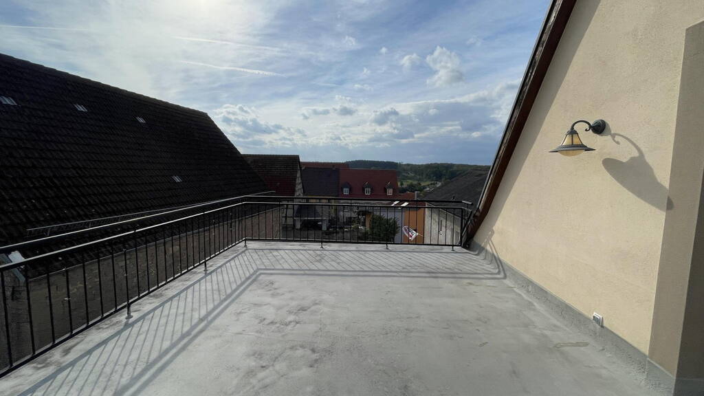 Ein echtes Highlight ist die riesige Dachterrasse -41 qm-, die einen fantastischen Fernblick ermöglicht und den Wohnraum erweitert. Besonders in den warmen Monaten bietet die Terrasse einen hohen Freizeitwert.
