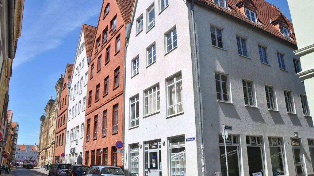 Die Stadt Stralsund ist durch ihre Attraktivität als Weltkulturerbestadt anerkannt. Die Altstadt wurde sehr umfangreich saniert und schafft durch Ihren Altbau-Flair ein verlockendes Wohnambiente. Die Frankenstraße in welcher sich das Mietobjekt befindet, liegt am Rand des lebhaften Stralsunder Altstadtkerns und schließt direkt an den Neuen Markt mit seiner wunderschönen Marienkirche an. Die mühsame Besteigung des Kirchturms mit seinen 366 Stufen wird mit einer grandiosen Aussicht auf Stralsund und Rügen belohnt.