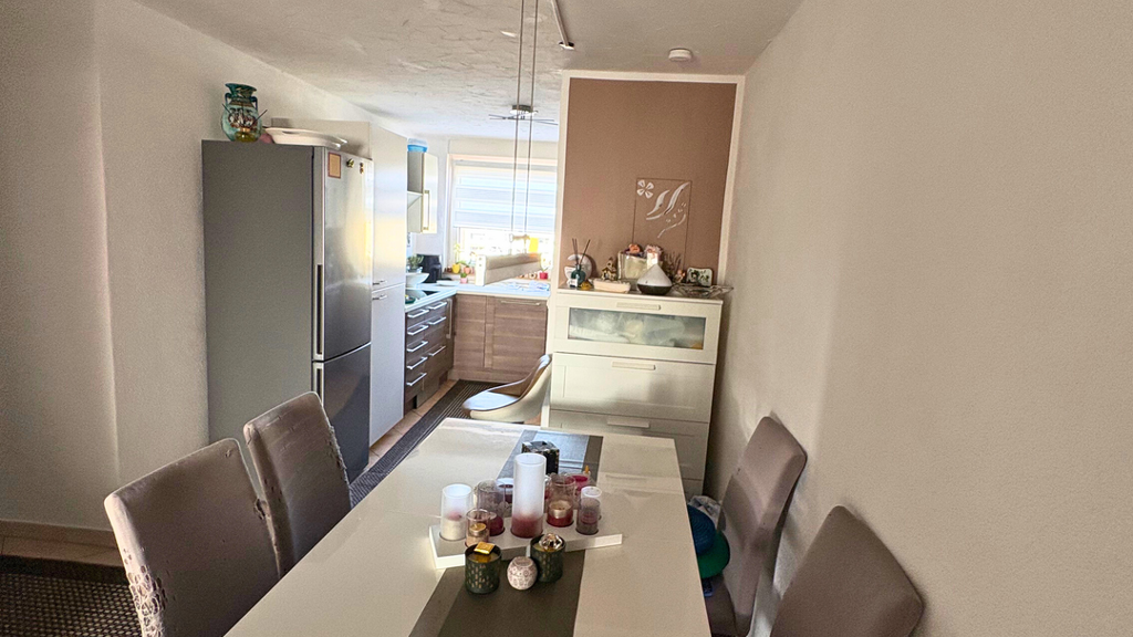 Die Wohnung wurde zuletzt im Jahr 2019 umfassend saniert und präsentiert sich in einem gepflegten Zustand. Die Böden sind je nach Bereich mit Fliesen, Laminat oder PVC ausgestattet und sorgen für eine praktische sowie ansprechende Raumgestaltung. Die vorhandene Einbauküche macht einen sofortigen Einzug problemlos möglich und bietet alles, was für den täglichen Bedarf notwendig ist.