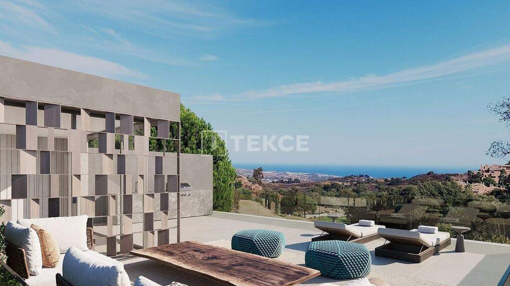 Elegante Villen mit Pools in einer erstklassigen Lage in Ojén Umgeben von üppigen Tälern und schattigen Obstgärten verbindet Ojén traditionellen ländlichen Charakter mit modernem Komfort und bietet kulturelle Erlebnisse, lokale Gastronomie und malerische Ausblicke über die Costa del Sol. Villen in Ojén zum Verkauf befinden sich in einem charmanten andalusischen weißen Dorf, umrahmt von der dramatischen Sierra Blanca und Sierra Alpujata, umgeben von Natur und reich an Geschichte. Die engen, verwinkelten Gassen des Dorfes zeugen von jahrhundertealter Architektur und einer friedlichen Atmosphäre, die weit entfernt vom Trubel der Küste liegt, aber dennoch nah genug ist, um den mediterranen Lebensstil zu genießen. In dieser ruhigen und erhöhten Lage gelegen, sind die Außenbereiche der Wohnanlage so gestaltet, dass sie mit der natürlichen Schönheit der Umgebung harmonieren. Jede Villa verfügt über einen privaten Pool auf einem großzügigen Grundstück und bietet so einen intimen Außenbereich zum Entspannen und Verweilen an. Die gesamte Anlage lädt mit ihren gepflegten Gärten und dem Blick über das erste Fairway des Golfplatzes El Soto bis hin zum Horizont des Mittelmeers zu einem ruhigen Lebensstil ein. Die großzügigen Außenterrassen bieten einen idealen Aussichtspunkt, um die Farben des Sonnenuntergangs und das Leben im Freien zu genießen. Im Inneren zeichnen sich die Villen durch Licht, Raum und zeitgemäßes Design aus. Offene Grundrisse und große Fenster maximieren das natürliche Licht, während klare Linien und hochwertige Oberflächen ein Gefühl von raffinierter Schlichtheit vermitteln. Geräumige Wohn- und Essbereiche gehen nahtlos in die Küche über und unterstützen so das gesellige Zusammenleben und müheloses Unterhalten. Die Schlafzimmer sind hell und gut ausgestattet, mit sorgfältig durchdachten Details, die sowohl den Komfort als auch die Alltagstauglichkeit verbessern. AGP-01065