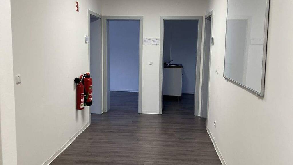 Das Büro kann wahlweise als Einzelbüro angemietet werden. Flur und Küche und Toilette werden anteilig und gemeinschaftlich mit den weiteren Mietparteien der Bürogemeinschaft genutzt. NKM: 381,- € / Monat/ Einzelbüro