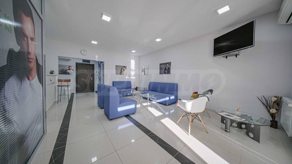 Das Büro befindet sich im ersten Obergeschoss und hat eine Fläche von 139,04 m². Die Ausrichtung ist nach Südwesten ausgerichtet und bietet einen Panoramablick auf die Prof. Kiril Popov Straße. Es wird luxuriös mit hochwertigen Materialien ausgestattet: