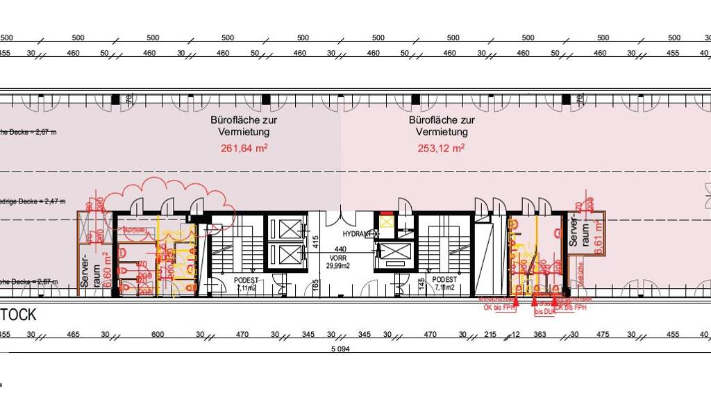 Büroflächen, pro Stockwerk 514,76m²: