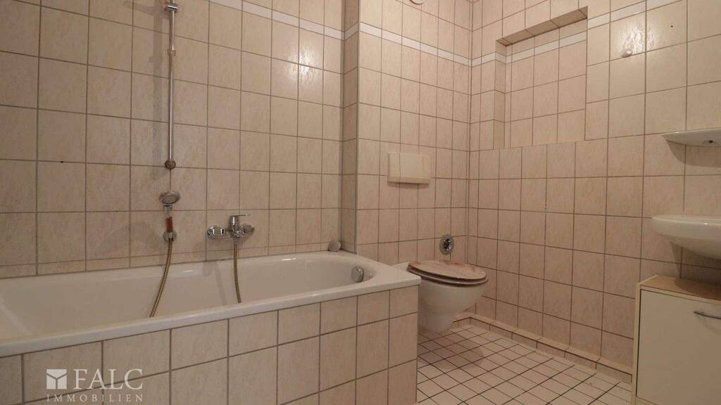 Die Küche ist funktional gestaltet und kann flexibel nach eigenen Vorstellungen eingerichtet werden. Ein angrenzender Abstellraum bietet praktischen Stauraum. Das Badezimmer verfügt über eine Badewanne.