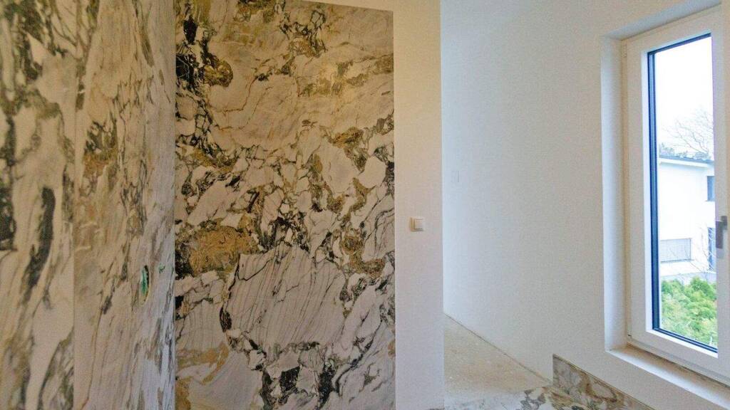 Die Fertigstellung der baugleichen Villen erfolgte 2025. In Villa 1 ist ist nach den Vorschlägen des Architekten Biondic bereits hochwertiger Marmorboden im Erdgeschoß und in den Bädern im Obergeschoß verlegt.