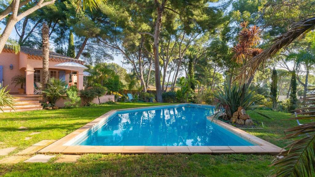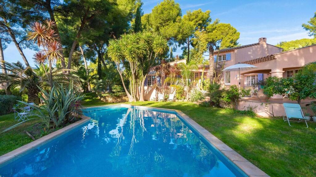 The villa is set within a lush landscaped garden planted with Mediterranean species and includes a 100 m³ swimming pool, creating the perfect oasis for summer living.