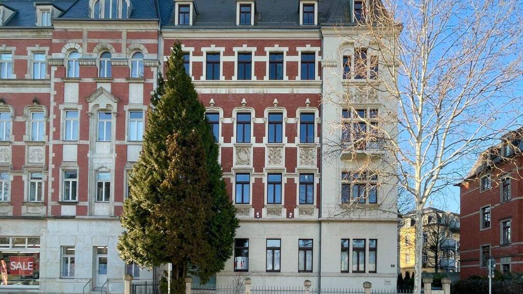 Die Tharandterstr. 58 ist ein viergeschossiges Altbauobjekt im Stadtteil Löbtau, das unter Denkmalschutz steht. Das gepflegte Haus besticht durch sein einzigartiges Treppenhaus. Beim Betreten des Hauses kommen helle und schöne Farbkombinationen und wunderbare Wandmalereien, die bis zur Decke reichen, zum Vorschein.