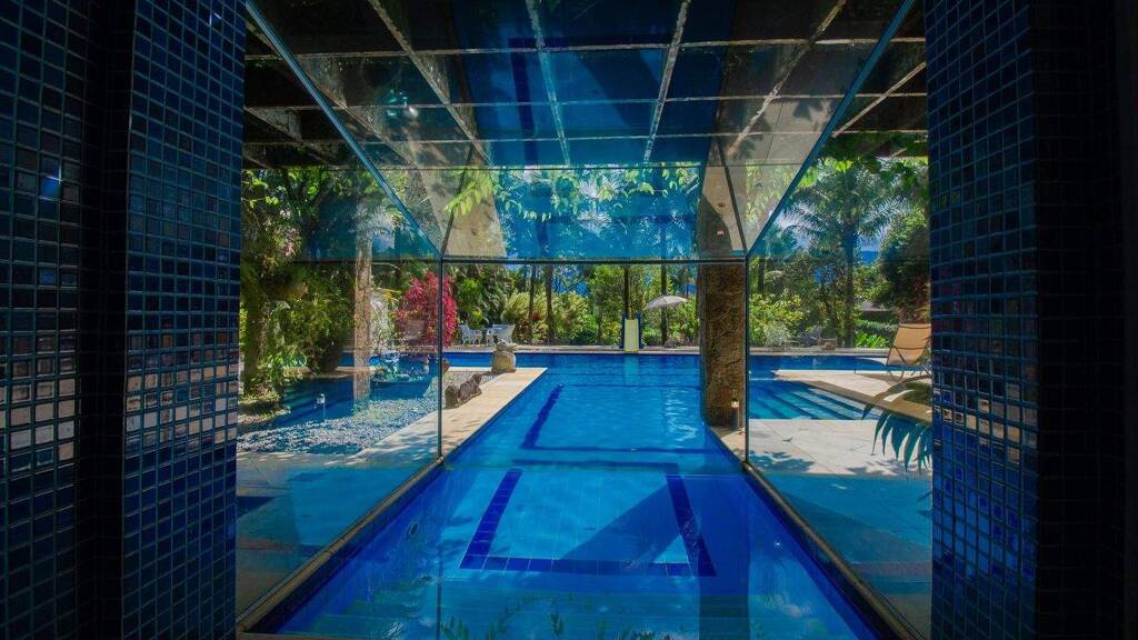 Hochwertige Residenz am Portobello-Kanal mit kolonialer Architektur und anspruchsvollem Stil. Die Umgebungen sind gemütlich mit einem leichten rustikalen Touch in der Auswahl der Möbel, die ein wenig von der Landschaft und der Natur in die Umgebung bringen. Es gibt 4 Zimmer, die sich auf Wohn-, Ess- und 2 Spiele verteilen, die alle in einen großen Balkon integriert sind, die Luftzirkulation erleichtern und die Umgebung luftig und komfortabel machen. In der Intimität gibt es 5 Suiten mit Kleiderschrank, 1 Master-Suite mit Badewanne und Büro. Alle verfügen über einen Balkon mit schönem Blick auf den Garten. Küche mit klassischer Architektur und hoher Deckenhöhe, die der Umgebung Weite und Charme verleiht. Servicebereich, Speisekammer und Mitarbeiterunterkünfte. Im Erdgeschoss befindet sich der Fitnessraum mit sozialem Bad, Whirlpool und Sauna, die in das Sportbecken integriert sind und die Umgebung mit Eleganz und Qualität ergänzen. Dieser Raum ist sowohl von innen als auch von außen leicht zugänglich. Überdachter Gourmetbereich mit Grill und Holzofen. Großer Garten, der das gesamte Anwesen umgibt, schwimmendes Deck und Leerstand für 46 Fuß.