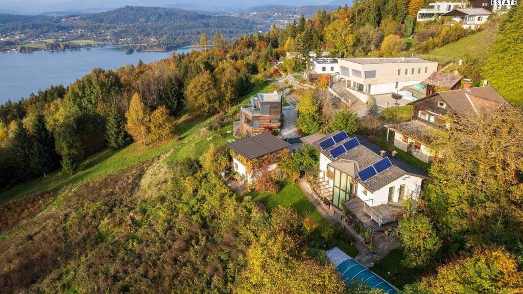 Die Immobilie wurde auf einem Plateau eines sanften Hügels errichtet, der im Süden in das Südufer des Wörthersees mündet. Das Haus hat einen unverbauten Blick im Westen zum Pyramidenkogel und im Süden zum Wörthersee Richtung Pörtschach. Im Süden befindet sich das Seental mit Keutschach als zuständiger Gemeinde. Hier haben Sie in einem Radius von rund 4,5 km 3 Badeseen zur Verfügung. Den mondänen Wörthersee, den Keutschacher "Familien" See und den naturnahen Hafnersee. Also viele Möglichkeiten Ihren Alltag ideal zu gestalten: Sie können sich zurückziehen, die Natur genießen, oder ihren sportlichen Lieblingsbeschäftigungen nachzugehen, wie Mountain-biken in allen Schwierigkeitsgraden, Weitwandern und im Winter Eislaufen am Keutschacher- und Rauschelesee oder Schifahren auf der Gerlitze und im Dreiländereck. Man erreicht den Wörthersee in 5 Minuten Fahrtzeit. Im nahegelegenen Reifnitz oder Keutschach finden Sie vor Ort alles, was Sie im täglichen Leben benötigen. In 10 Minuten erreichen Sie den Pyramidenkogel und können von dort aus das wunderbare Kärnten-Panorama genießen. Die Wörthersee-Gemeinden Maria Wörth und Reifnitz sind nur 5 Autominuten von Rauth entfernt. Im Hotspot Velden mit seiner perfekten Infrastruktur und dem bekannten Nachtleben ist immer etwas los und in 15 Min. erreichbar. Über die nahe Autobahn gelangen Sie schnell an den Verkehrsknotenpunkt Villach. Die 15 km entfernte Landeshauptstadt Klagenfurt mit dem Flughafen ist gut über Viktring erreichbar und bietet mit den vielen Einkaufszentren und seinem bekannten, ganzjährigen Kulturleben jede Menge Abwechslung. Slowenien und die italienische, obere Adria mit den bekannten Badeorten, aber auch die Städte Venedig, Triest, Graz und Salzburg erreichen Sie in etwas über 2 Autostunden.