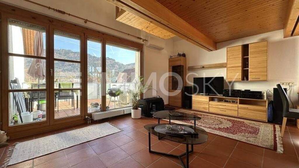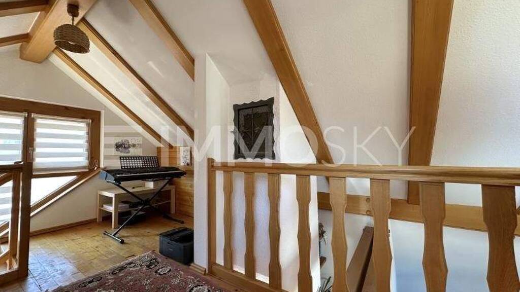 Die liebevolle und mit schönem Holz eingerichtete Wohnung überzeugt mit einem offenen Kamin und einem modernen Bad mit Wanne. Neben den beiden Schlafzimmern und dem modernen WC befindet sich ein weiterer Raum für Wäsche oder Homeoffice.