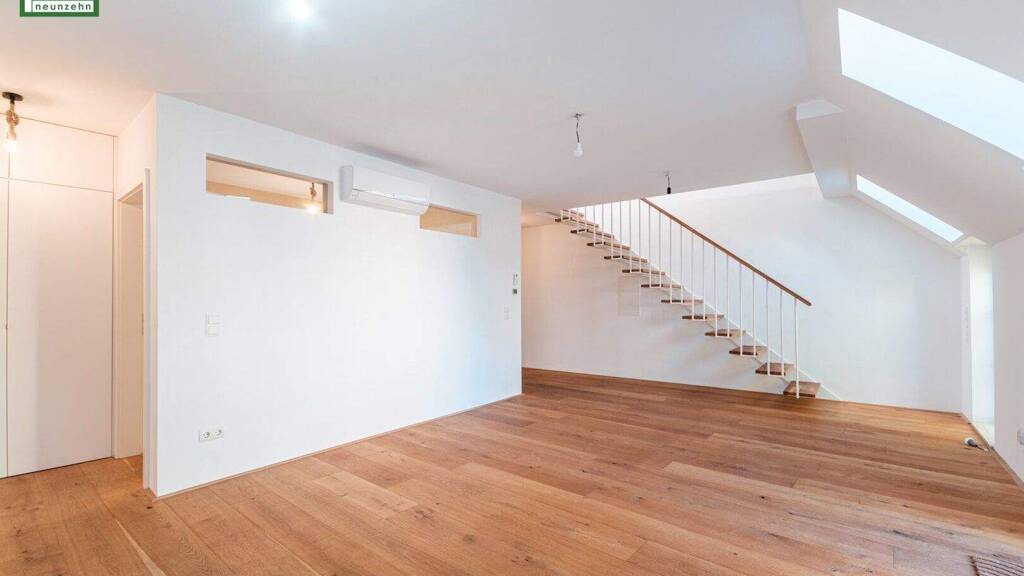 Zur Miete angeboten wird eine exklusive Maisonettewohnung mit ca. 93?m² Wohnfläche und insgesamt rund 24?m² Freiflächen in ausgezeichneter Hietzinger Lage. Die Wohnung erstreckt sich über zwei Ebenen, bietet durchdachte Raumaufteilung, hochwertige Ausstattung und überzeugt durch ihre großzügige Dachterrasse mit Weitblick sowie einen zusätzlichen Balkon.