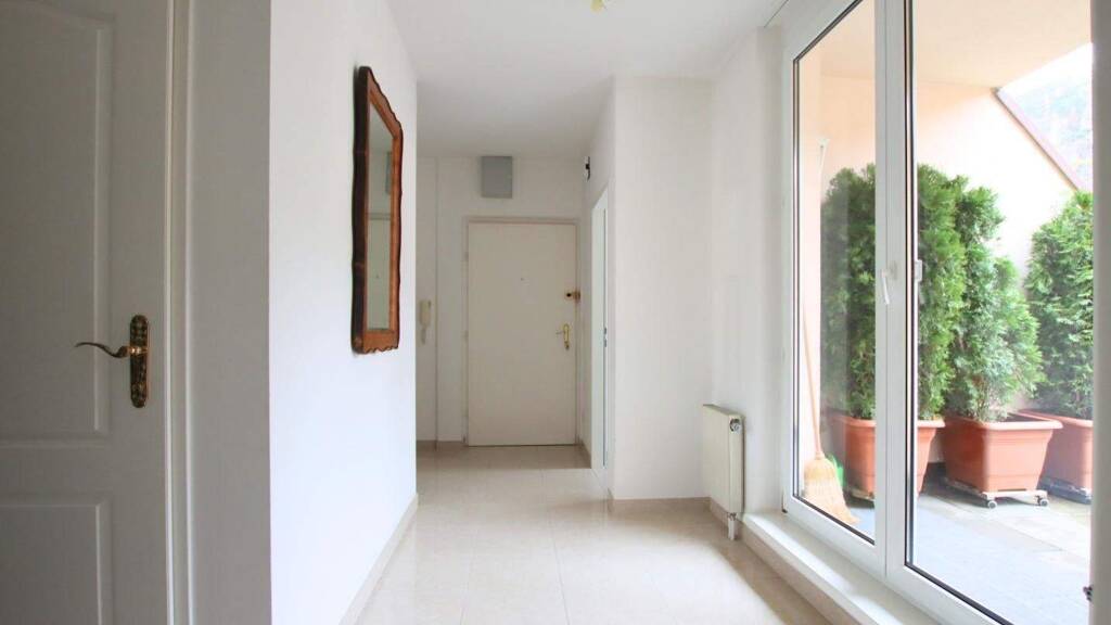 Der zentrale Vorraum führt Sie in alle Bereiche der Wohnung: Besonders hervorzuheben sind die eleganten Türen, sowie die geschmackvolle Einbauküche, ideal für Kochliebhaber. Die Badewanne im Badezimmer lädt zu erholsamen Momenten ein. Zusätzlich steht Ihnen ein Anschluss für die Waschmaschine zur Verfügung. Das WC ist separat und befindet sich direkt neben dem praktischen Abstellraum.
