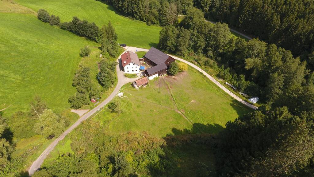 Die Grünflächen sind derzeit noch verpachtet, könnten aber in Kürze vom neuen Eigentümer genutzt werden. Bei der auf den Bilder zu sehenden Straße handelt es sich um eine öffentliche Straße, diese dient jedoch nur als Zubringer zum Hof und endet auch am Hof. Die Straße wird von Fremden nicht genutzt, sondern nur von kommunalen Diensten wie Müllabfuhr, Räumdienst, Post etc. Die Abwasserentsorgung findet über eine biologische Kleinkläranlage statt. Es gibt keinerlei Verkehrslärm, keine Oberleitungen oder Sonstiges.