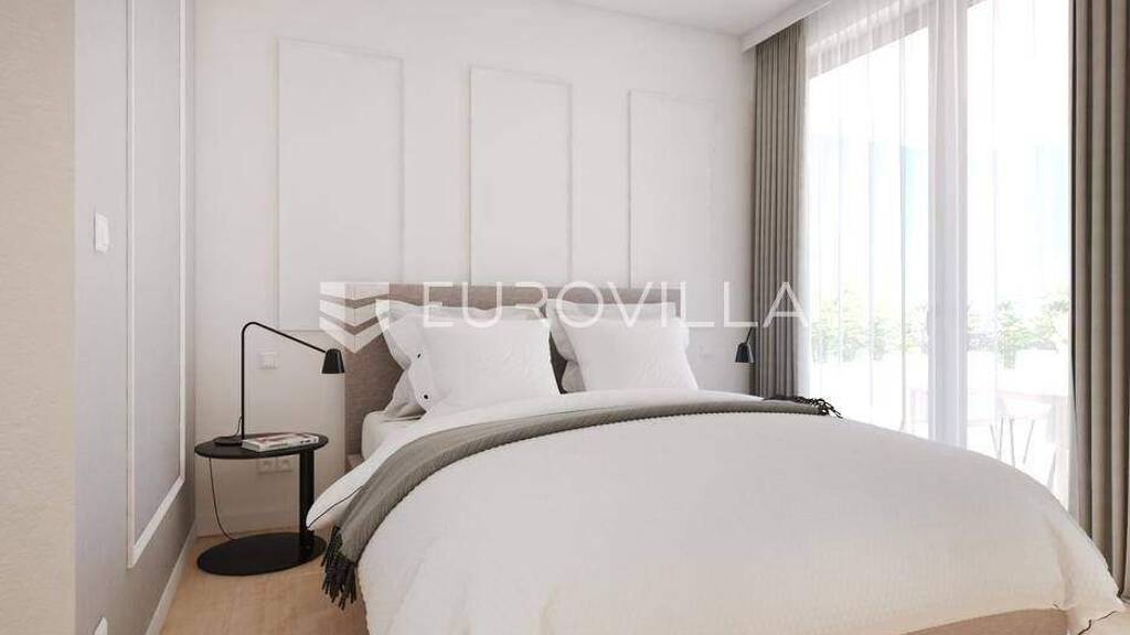 Kastela, luksuzan penthouse na trecem katu urbane zgrade s panoramskim pogledom na more, stan je direktno liftom povezan s podzemnom garazom.Penthaus na 3. katu zgrade velicine 102,3 m2, od cega je zatvoreni stambeni dio 79,12 m2, uz natkrivenu terasu od 23,2 m2 i veliku nenatkrivenu terasu sa zardinjerama 87,6 m2.Sastoji se od moderne kuhinje visokog standarda s blagovaonicom te dnevnog boravka otvorenog tipa (32,6 m2), hodnika i stubista, dvije komforne spavace sobe (master soba s vlastitom en-suite kupaonicom), potpuno opremljene kupaonice, velike terase (119,6 m2 od cega je natkriveni dio 23,2 m2). Iz stana se, kao i s terase, pruza prekrasan panoramski pogled na Kastelanski zaljev.Uz kupnju stana su pripadajuca dva garazna mjesta 31,5 m2, ostavu u garazi od 6 m2 te jedno vanjsko parkirno mjesto od 13 m2 (sve ukljuceno u cijenu).Potpuno opremljena kupaonica i kuhinja po mjeri s aparatima visokog standarda.Na prekrasnoj okucnici ugraden je automatiziran sustav navodnjavanja zelenih povrsina te je zasadeno mediteransko odraslo bilje, a zgrada ima i osobu zaduzenu za brigu i odrzavanje prostora i zelenila. Orijentacija stana je jug- istok, a velike staklene stijene osiguravaju obilje prirodnog svjetla i prozracnost, sto doprinosi komforu zivljenja u ovoj nekretnini.Odlicna pozicija, u blizini svih sadrzaja potrebnih za ugodan zivot, sve na par min hoda, kao i plaza te setnica uz more. Izvrsna prometna povezanost i komforan pristupni put do zgrade. Medunarodna Zracna luka Split udaljena je 10 km, a u blizini je i poznata marina za brodove "Kastela", te izvrsna pristupacna brza cesta.Grad Kastela, s jednom od najduljih obala u Hrvatskoj, smjesten je izmedu dva UNESCO-ova grada, Splita i Trogira do kojih se stize kratkom i ugodnom voznjom. Zahvaljujuci izvrsnoj lokaciji, predivnom prirodnom okruzenju i bogatoj ponudi sadrzaja, predstavlja idealno mjesto za ugodan i kvalitetan zivot.Nekretnina je odlicno ulaganje za tvrtke u sustavu PDV-a.Planirani zavrsetak radova 03/2026. godine.Visoko kvalitetna gradnja i koristena oprema:postavljene podove, parket i keramicke plocice visoke klaseelektricno podno grijanje s digitalnim upravljanjem ugradeno u kupaonicikompletno opremljena kupaonica (elektricni bojler za grijanje vode, sanitarije, walk-in tus u okviru zadanog cjenovnog ranga)ulazna protuprovalna i protupozarna vrataInverter klima uredaj snage 3,5 kW u dnevnom boravku i svim sobamaunutarnja stolarija bijele boje i ravnih, modernih linijavanjska stolarija antracit kombinacija Alu- PVC, s podizno kliznim stijenkamaoluci skriveni u fasadivrhunska toplinska i zvucna izolacija, vanjska fasada 8 cm kamena vunaNekretnina ce biti izvedena u rangu A+ energetskog certifikata sukladno standardima.Za vise informacija stojimo Vam na raspolaganju.... Vise na eurovilla.hr, ID: 347349