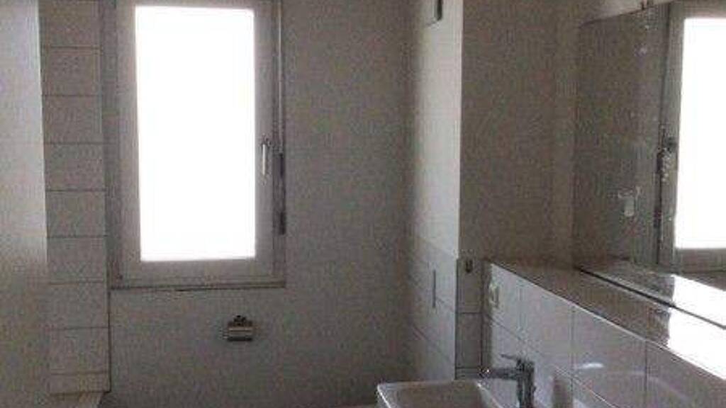 Das moderne Badezimmer ist hochwertig ausgestattet und verfügt über eine sehr flache Dusche sowie eine Badewanne. Ein Balkon lädt zum Entspannen im Freien ein.