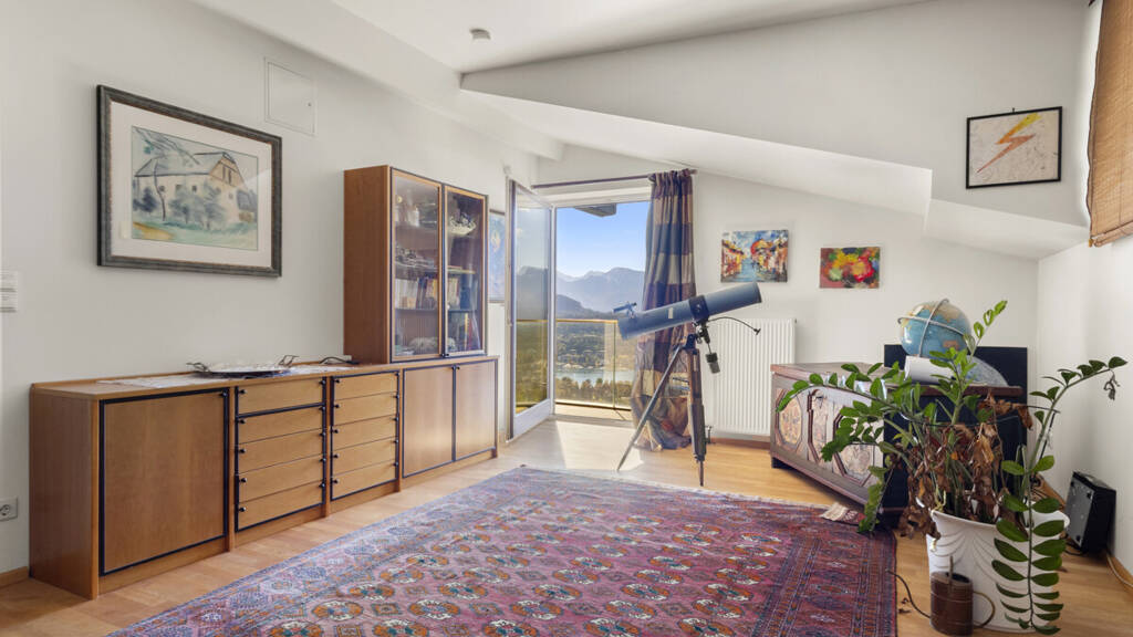 Die erhöhte Lage bietet einen atemberaubenden Blick über den Wörthersee und die umliegende Berglandschaft - ein Panorama, das seinesgleichen sucht. Umgeben von gepflegten Villen und großzügigen Grundstücken genießt man hier ein Höchstmaß an PRIVATSHÄRE und EXKLUSIVITÄT, fernab vom Trubel und dennoch nur wenige Minuten vom pulsierenden Zentrum Veldens entfernt.