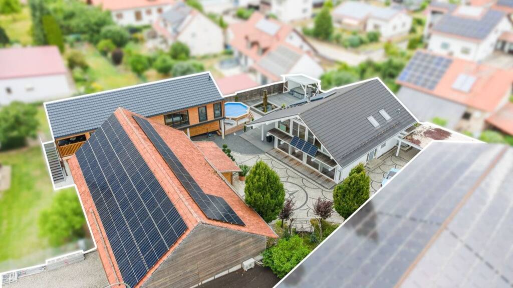 Merkmale: Voll ausgestattetes Fitnessstudio (ca. 50m²) mit Klimaanlage - privat trainieren auf Profiniveau PV-Anlage (26?kWh) mit 15?kW-Speicher (Baujahr 2023) - hohe Eigenversorgung Mehrere Lagerbereiche - ideal für Gewerbe oder Hobbys Historischer Kartoffelkeller - charmantes Relikt mit Potenzial 2 Stellplätze Zusätzliche lange Garage angrenzend
