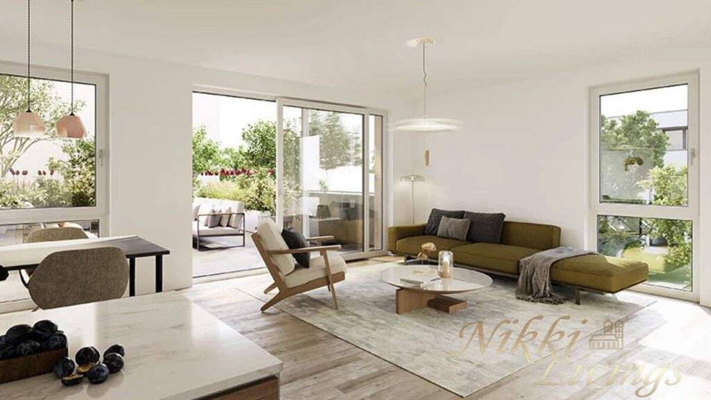 Schon beim Eintreten empfängt Sie ein heller, weitläufiger Flur. Der offener Wohn- und Essbereich ist lichtdurchflutet und hat eine große Fensterfront mit direktem Zugang zur sonnigen Terrasse. Hier genießen Sie entspannte Abende mit Familie und Freunden. Die angrenzende Küche ist sowohl vom Flur als auch vom Wohnbereich erreichbar und verbindet Funktionalität mit modernem Wohnkomfort.