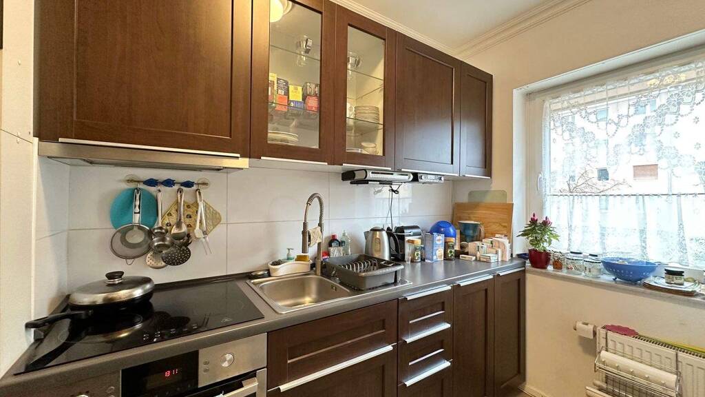 Die separate Küche ist bereits mit einer modernen Einbauküche versehen, sodass kein zusätzlicher Investitionsbedarf besteht. Ein Kellerabteil rundet das Platzangebot sinnvoll ab.
