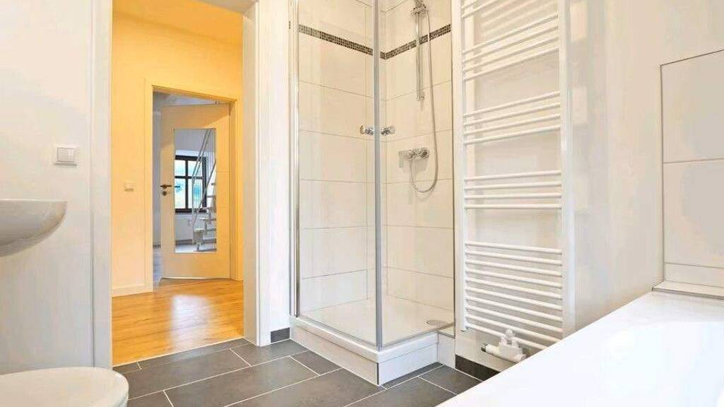 Das Badezimmer ist ein wahres Highlight: Mit einem Fenster, einer komfortablen Badewanne sowie einer separaten Dusche erfüllt es höchste Ansprüche an Funktionalität und Komfort. Die maßgefertigte Einbauküche ist mit hochwertigen Geräten ausgestattet und bietet ausreichend Platz für kulinarische Abenteuer.