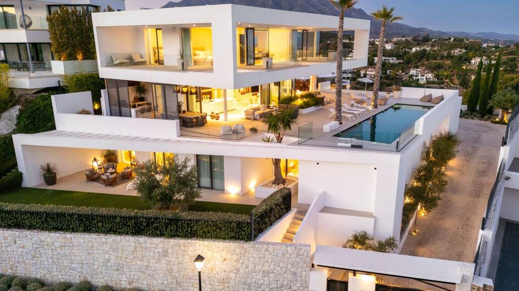 Eine moderne Villa, die 2021 in La Quinta gebaut wurde. Mit ihrer Südausrichtung bietet die Villa einen Panoramablick, der vom majestätischen Berg La Concha über das Mittelmeer bis nach Gibraltar reicht und dafür sorgt, dass jeder Sonnenaufgang und -untergang ein Gefühl der Ruhe vermittelt.