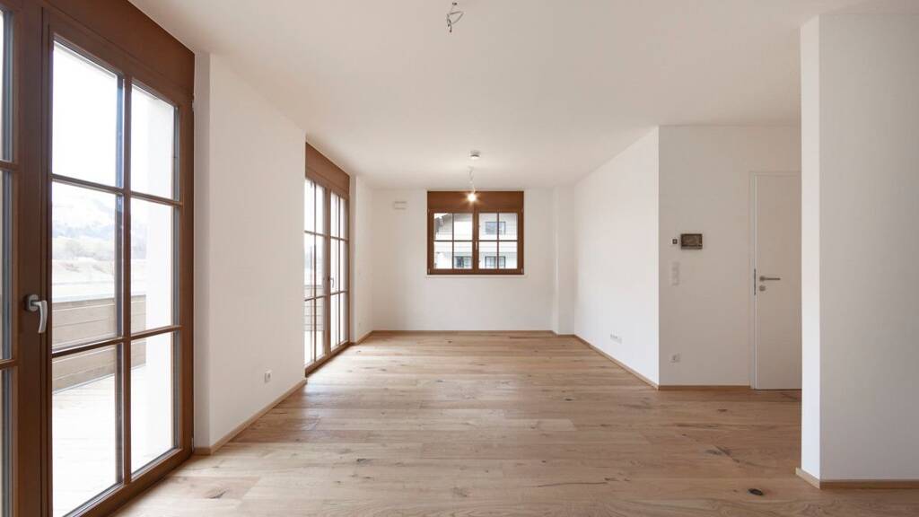 Hier kommt die Top 4 zum Verkauf. Sie befindet sich im 1. Obergeschoss und verfügt über 52,35 m² Wohnfläche und unterteilt sich in Vorraum, Schlafzimmer, Wohlfühlbadezimmer und einen offenen und hellen Wohnbereich mit traumhaften Eichenholz Dielen Böden und großen Fensterflächen. Ein besonderes Highlight dieser Wohnung, ist aber bestimmt der Sonnenbalkon auf über 16 m² mit herrlichen Ausblick auf die imposante Bergwelt der Region.