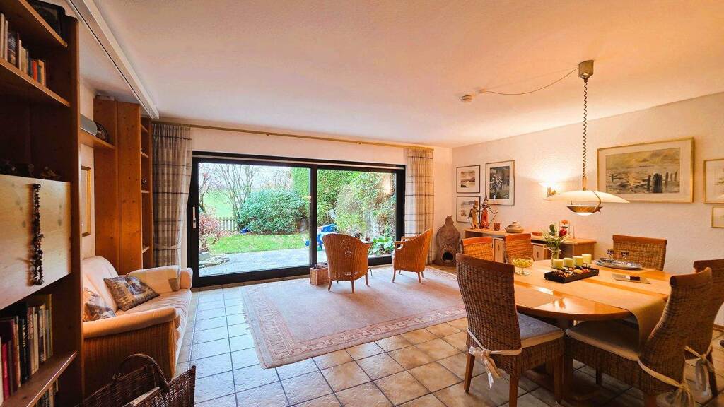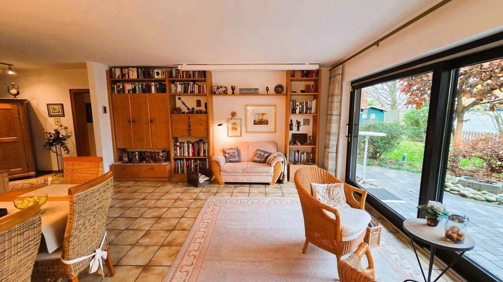Ruhige Eigentumswohnung mit großem Garten und maßgefertigter Ausstattung. Diese außergewöhnliche Immobilie vereint die Vorzüge eines Hauses mit dem Komfort einer Wohnung. Zwei Wohneinheiten wurden zu einer großzügigen Einheit verbunden und bieten ein Wohnkonzept, das Raum, Licht und Natur perfekt kombiniert. Zur Wohnung gehört ein privater Garten (ca. 100 m²) mit Blick auf ein idyllisches Feld. Zwei lichtdurchflutete Wohnzimmer bieten Ihnen einen direkten Zugang zum Garten. Die zwei separaten Hauseingänge sind ideal für eine flexible Nutzung oder Mehrgenerationenwohnen. Eine Garage auf dem Hof und ein zusätzlicher Stellplatz direkt vor einem der Eingänge bieten weitere Flexibilität. Die Fußbodenheizung sorgt in allen Räumen für höchsten Wohnkomfort. Die maßgefertigte Küche und individuell angefertigte Möbel sind inklusive und sorgen für ein exklusives Wohnambiente. Weitere 10 m² stehen zur Verfügung und sind nicht als Wohnraum angerechnet. Das Hausgeld für beide Einheiten liegt zusammen bei 475,- EUR.