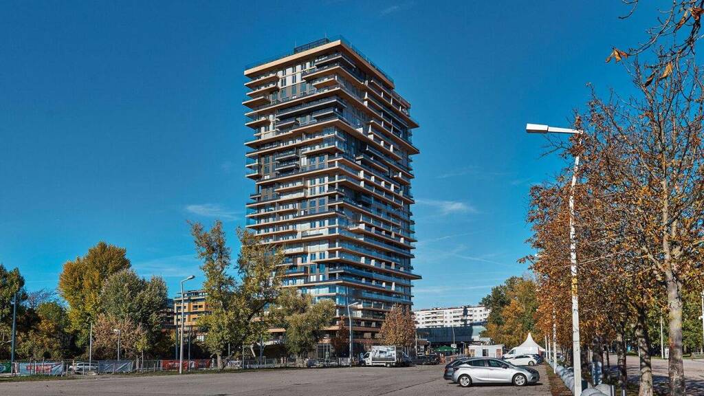 Der heuer fertiggestellte Wohntower mit 28 Etagen plus 3 Untergeschoßen bietet 340 Wohneinheiten sowie zahlreiche Extras wie Concierge-Service und eine Wellness- und Freizeitoase am Dach im 27. Stockwerk!