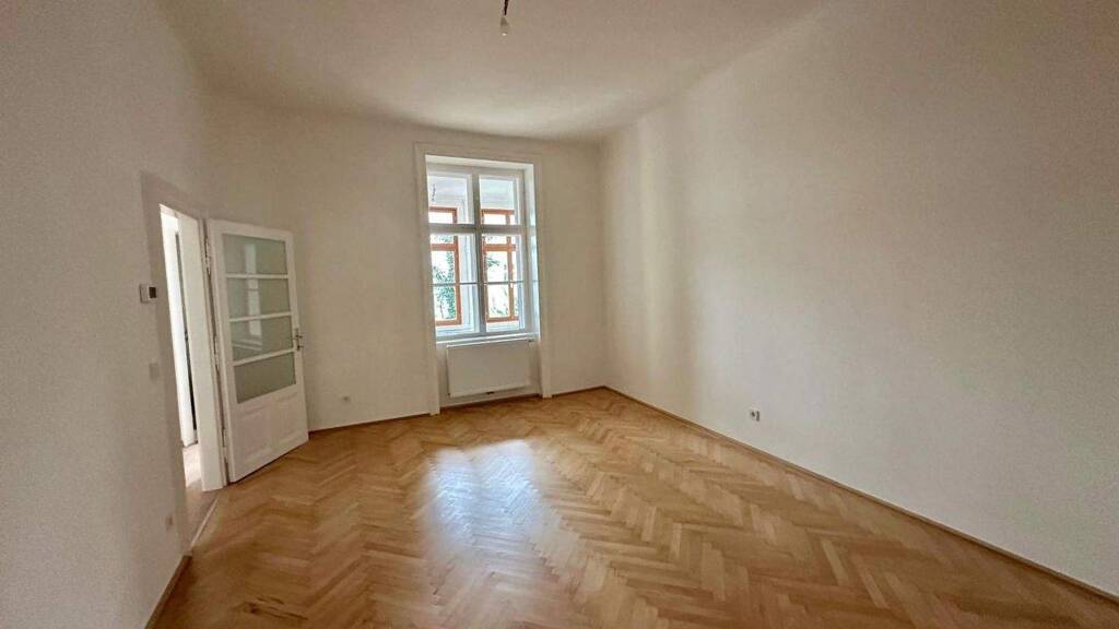 Die Wohnung befindet sich in einem gepflegten Altbauhaus und überzeugt durch ihre angenehme Raumwirkung, hohe Räume sowie den schönen Fischgrätparkettboden in den Wohnräumen. Die beiden Zimmer sind gut geschnitten und eignen sich ideal als Wohn- und Schlafzimmer oder alternativ als Wohn-/Arbeitskombination. Durch die großen Fenster wirkt die Wohnung freundlich und lichtdurchflutet. Die Küche ist separat angelegt und vom Wohnbereich getrennt begehbar. Ein besonderes Highlight ist die charmante Veranda, die sich ideal als kleines Esszimmer oder auch als Arbeitszimmer nutzen lässt. Wichtig: Eine Küche ist nicht vorhanden (Küchenanschlüsse sind gegeben). Das Badezimmer ist modern verfliest und mit einer Dusche, Waschbecken sowie Handtuchheizkörper ausgestattet. Das WC ist laut Plan separat bzw. im Sanitärbereich getrennt situiert. Das Haus verfügt über keinen Lift. Die Vermietung erfolgt unbefristet.