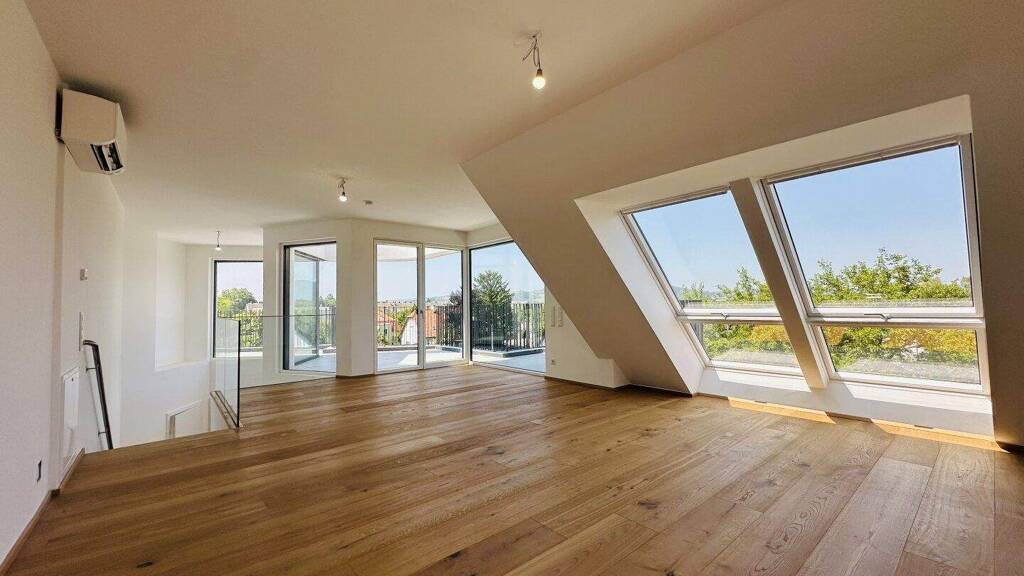 Vom Wohnbereich aus gelangen Sie direkt auf die große Terrasse - ein privates Wohlfühl-Refugium über den Dächern. Ob Sonnenbaden, Urban Gardening oder laue Sommerabende mit Freunden - dieser Außenbereich bietet außergewöhnlichen Wohnwert, absolute Privatsphäre und einen traumhaften Westblick auf den Kahlenberg, der jeden Tag aufs Neue zum Genießen einlädt.