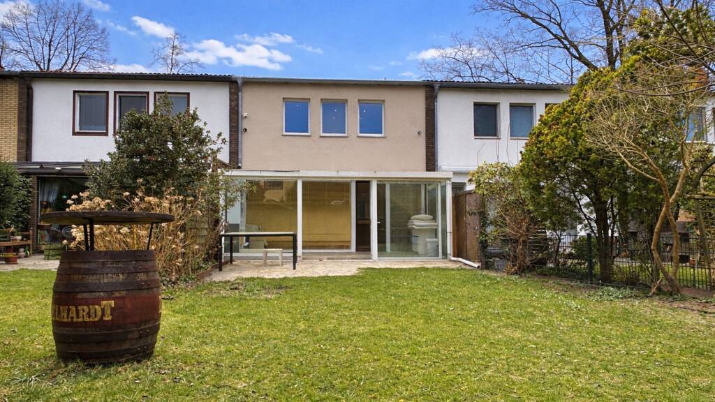 Dieses hochwertig sanierte Reihenmittelhaus, ursprünglich ca. 1965 erbaut, befindet sich in der begehrten Kladower Finnenhaussiedlung und vereint klassischen Charme mit modernem Wohnkomfort. Auf einem ca. 211 m² großen Grundstück bietet das Haus ein durchdachtes Raumkonzept für Familien und Paare, die Wert auf Qualität und Stil legen. Bereits beim Betreten empfängt Sie ein einladender Eingangsbereich mit praktischer Garderobe. Das Erdgeschoss besticht durch ein großzügiges Wohnzimmer mit offener, hochwertiger Einbauküche, das Wohnzimmer geht nahtlos in den lichtdurchfluteten Wintergarten über. Von hier aus gelangen Sie direkt in den Garten mit Süd-West-Ausrichtung - ideal zum Entspannen oder für gesellige Stunden im Freien. Ein Gäste-WC rundet das Erdgeschoss ab. Im Obergeschoss erwarten Sie 2 ½ gemütliche, lichtdurchflutete Zimmer sowie ein modernes Duschbad. Das Haus ist in den letzten zwei Jahren umfangreich modernisiert und saniert worden. Der Fußboden ist mit Parkettboden ausgestattet, das Badezimmer und das Gäste-WC verfügen über hochwertigen Sanitärobjekte von Geberit. Beheizt wird das Haus über eine effiziente Gastherme, alle Räume verfügen über Fußbodenheizung. Dieses Reihenmittelhaus bietet Ihnen ein komfortables, sehr gepflegtes Zuhause mit sonnigem Garten und moderner Ausstattung - ein idealer Rückzugsort in einer der beliebtesten Wohnlagen Berlins.